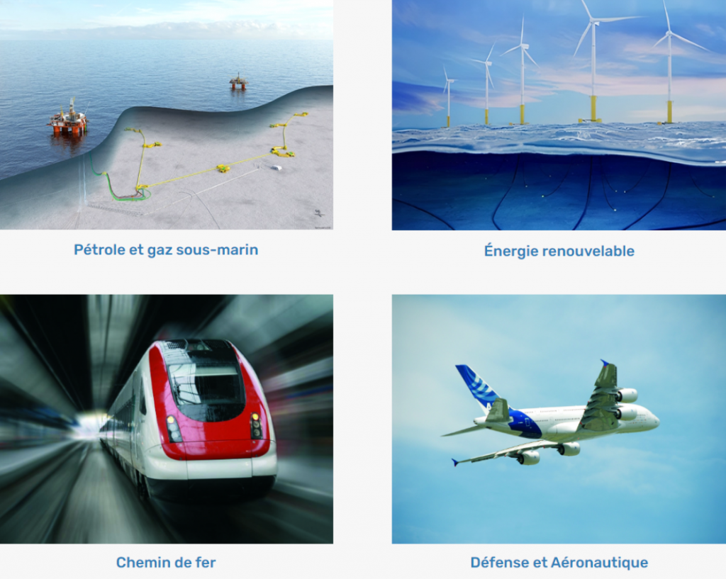 Spécialisée dans la haute puissance, elle est spécialisée dans les connecteurs pouvant résister aux conditions extrêmes de température, corrosion, pression ; certains de ses produits permettent d’alimenter des équipements sous une tension de 18 000 volts. Ces connecteurs géants sont très souvent installés sous l’eau à 2 ou 3 km au fond des océans. L’entreprise investit chaque année dans la R&D puisque ses produits doivent pouvoir résister au moins 30 ans, les interventions étant très couteuses. L’entreprise qui employait 80 personnes il y a un an encore, compte à ce jour 140 salariés et a réalisé un CA de 5 millions d’euros en 2021. Le bureau d’étude compte 16 personnes aujourd’hui.